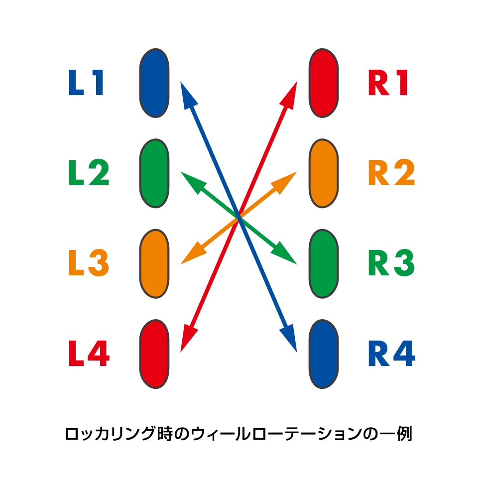 というように各々が相対しているウィールを入れ替えるという方法だ。(参照:図2